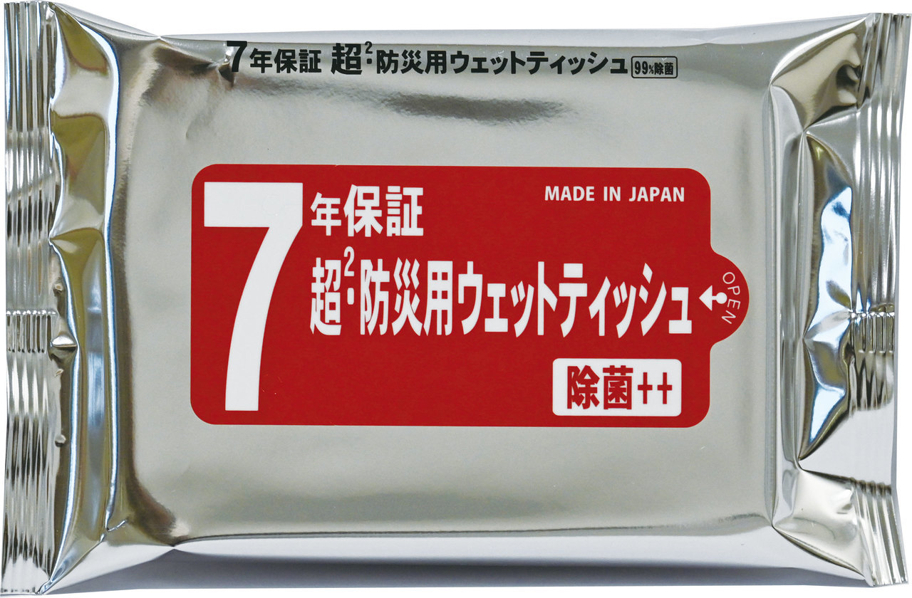 5年保証」の防災用ウェットティッシュ